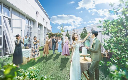開放感に満ちたガーデン付パーティ会場。ふたりらしいスタイルでこだわりのおもてなしを