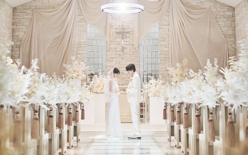 銀世界を思わせる純白のチャペル。温もりと祝福に包まれるセレモニー