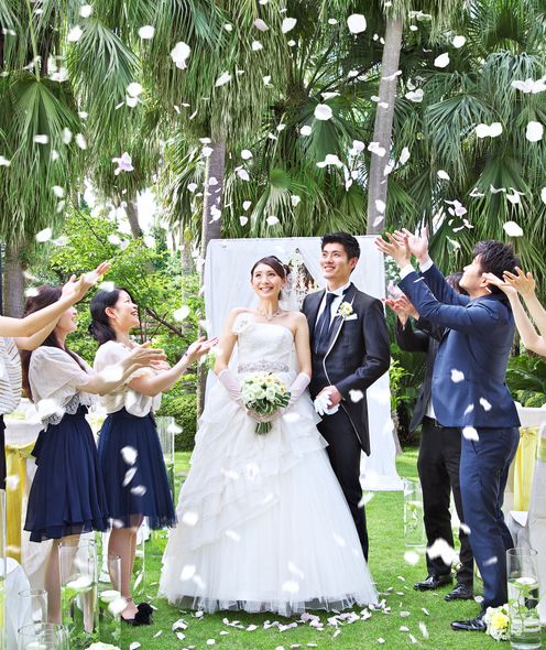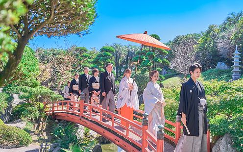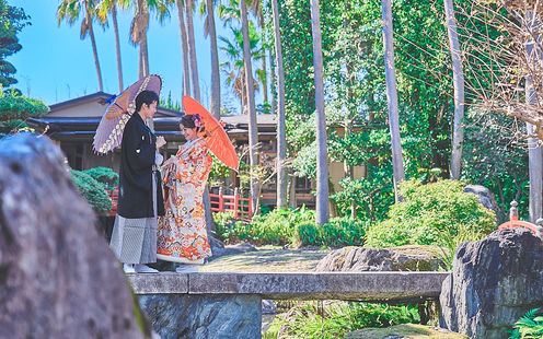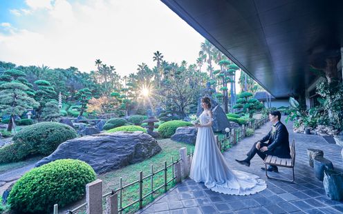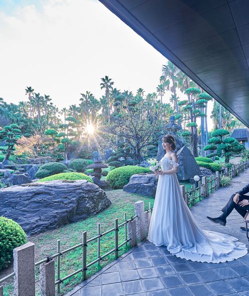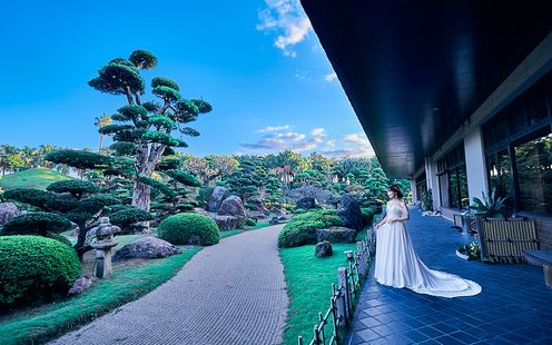 日本庭園と南国ムード漂う広々としたガーデンでふたりらしい挙式や、記念撮影を楽しんで!