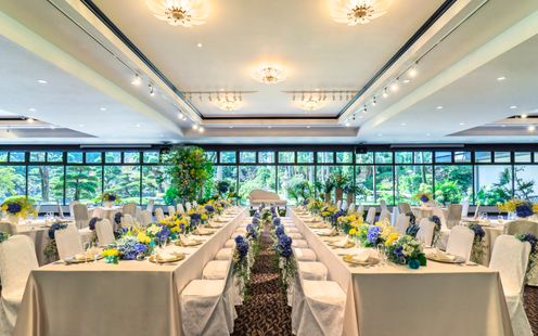 2面窓から180度の四季折々の景観が広がる自然美豊かなパーティ会場