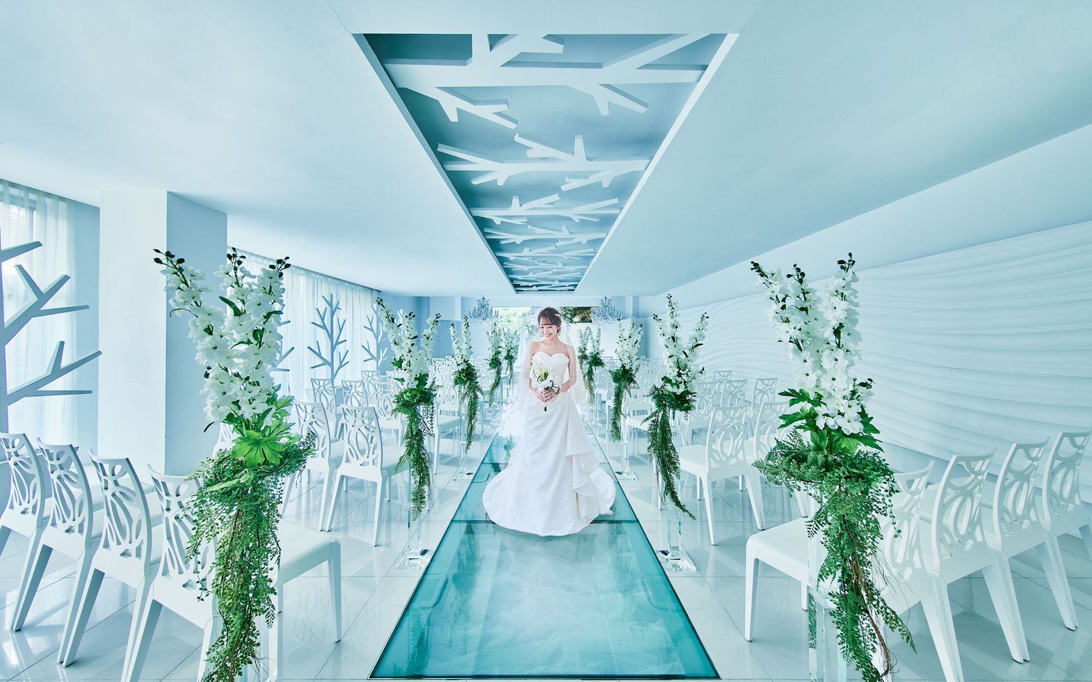 サンゴや砂浜、波など南国の楽園をイメージしたリゾート感たっぷりのチャペル