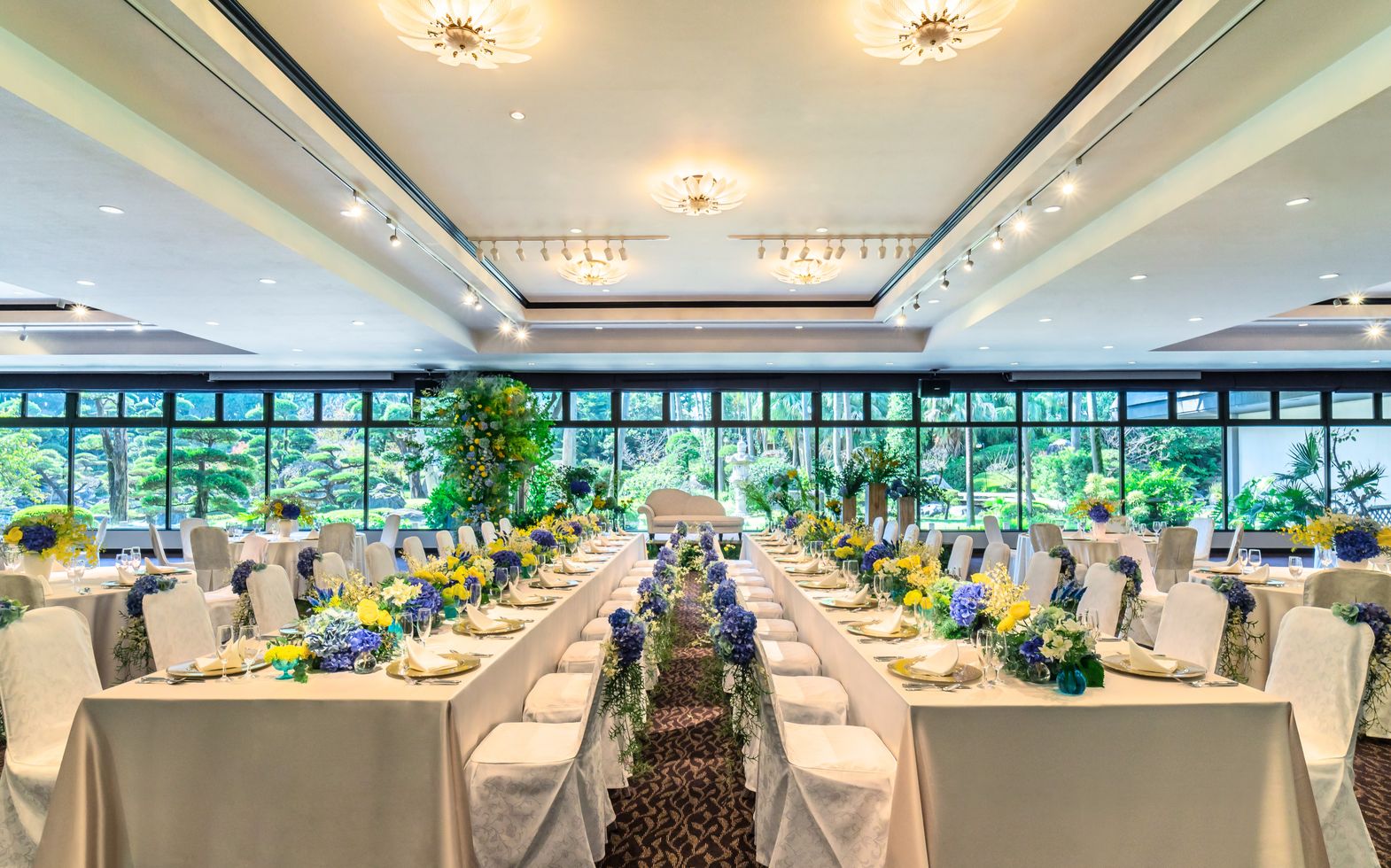 庭園の大パノラマが印象的なスタイリッシュなパーティ空間