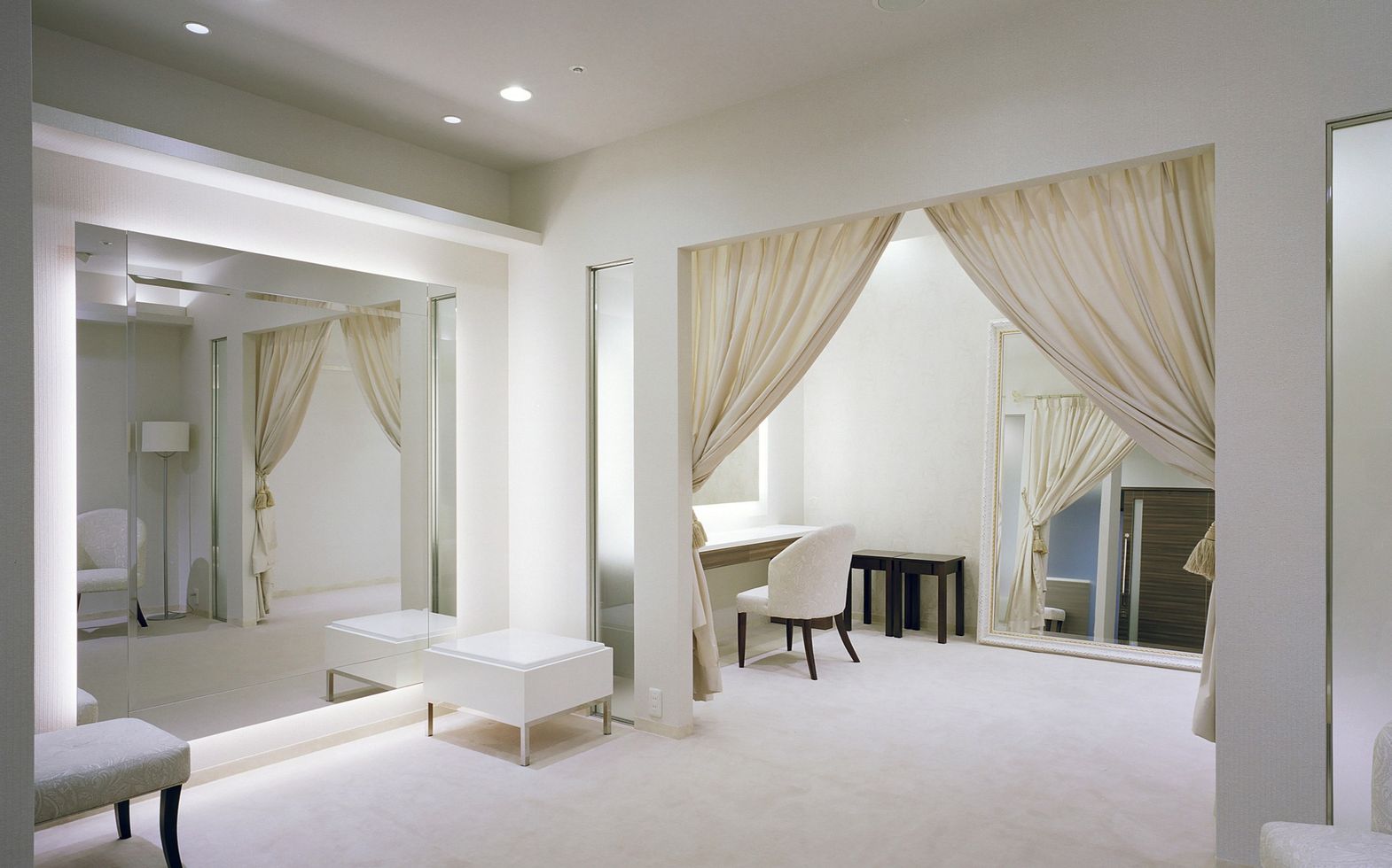 ハリウッドミラーもある、真っ白なノーブルな空間で身支度を整えていただけます。