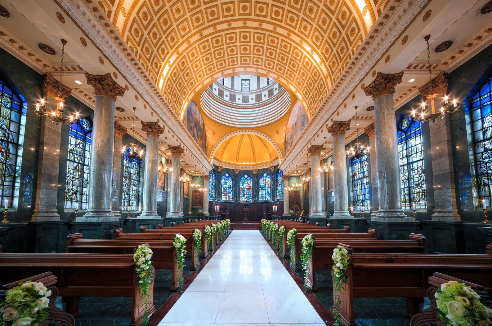 01.【誰もが一度は夢見る本格派大聖堂】15枚のステンドグラスに彩られた正統派チャペル