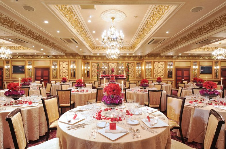 会場はシャンデリアや壁がとにかく豪華で煌びやかです。
