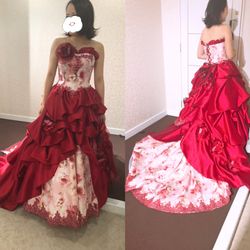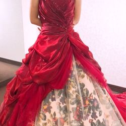 ワインレッドドレスで、後ろも長くて綺麗でした✨