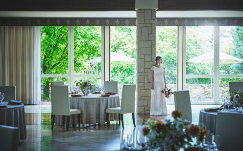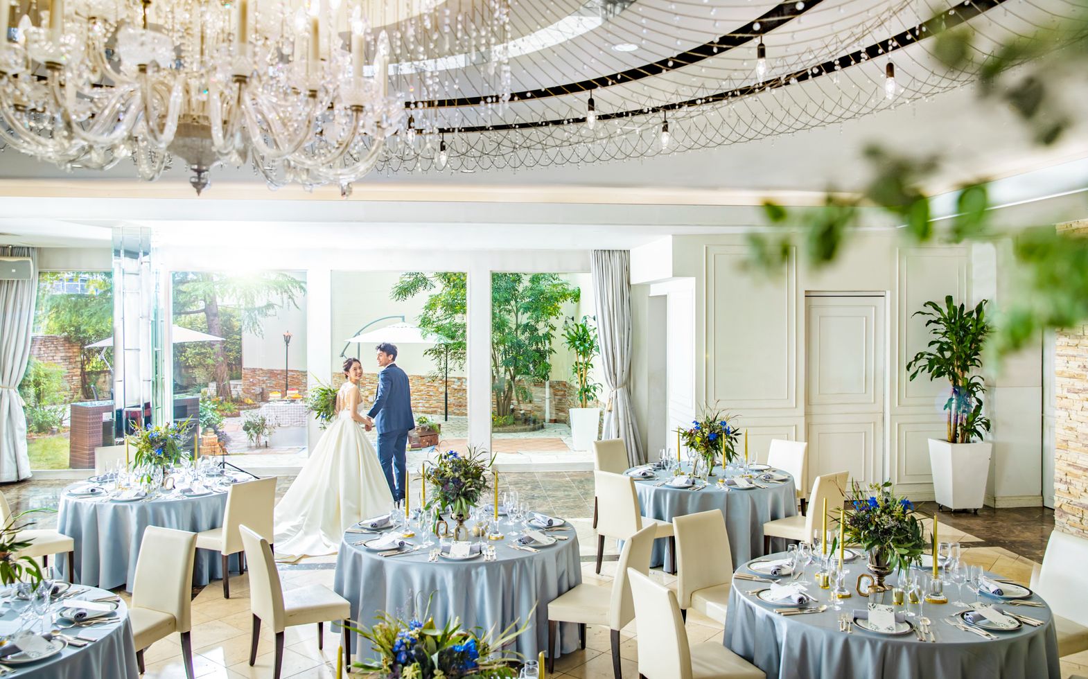 専用のウェイティングルームやガーデンを備えた2つのパーティ会場をまるごと使って贅沢な1日を過ごせるのが魅力。「クラレット」は吹き抜け天井の高さが6m、階段入場も叶う空間。また、開放感あふれるガーデンは挙式スペースとしても利用可能です。遠方から招くゲストに合わせて、挙式の開始時間を遅めに設定したり、控室をゆったり使ってくつろいでもらったりと、ゲスト想いのおもてなしが叶います。