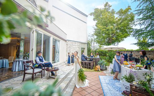 披露宴会場への入退場はもちろん、ふたりのアイデア次第で自由に使えるプライベートガーデン。デザートビュッフェや、グリルビュッフェ、バーベキューなどゲストと語らう時間や、夏祭り、サッカー、始球式など一風変わった演出も提案いたします。