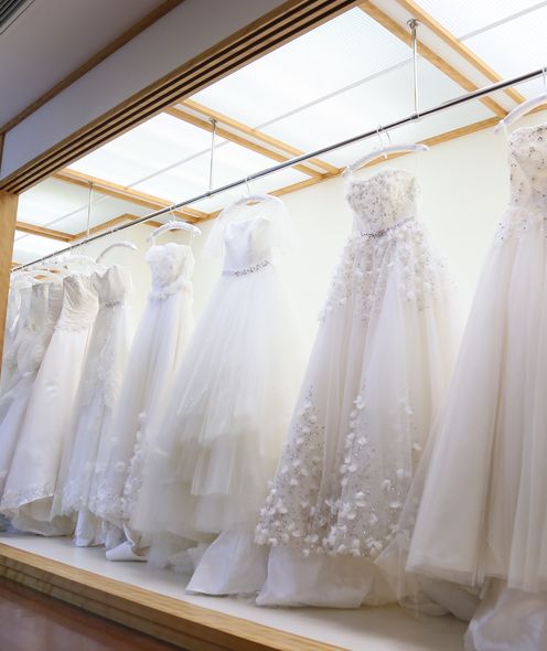 館内に衣装室を完備。プランナーとの打ち合わせから衣装合わせまで移動なく行え、落ち着いた空間で試着できます。