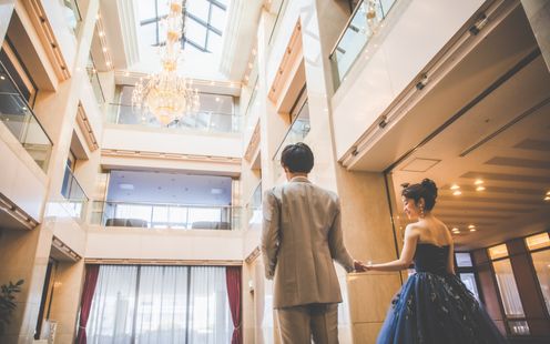 ホテル内とは思えない壮大なスケールに心を奪われる。静かな感動が、心に深く残る誓いの舞台