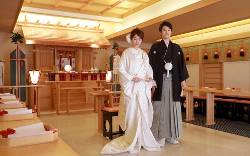 凛とした美しさに心が整う和の空間。雅楽の調べが響く中で、格調高い神前式を叶えて