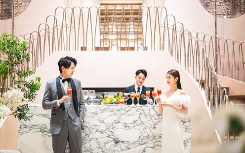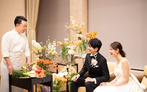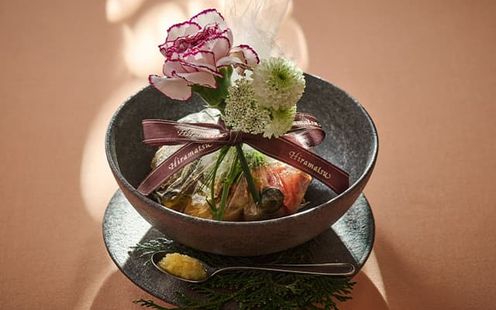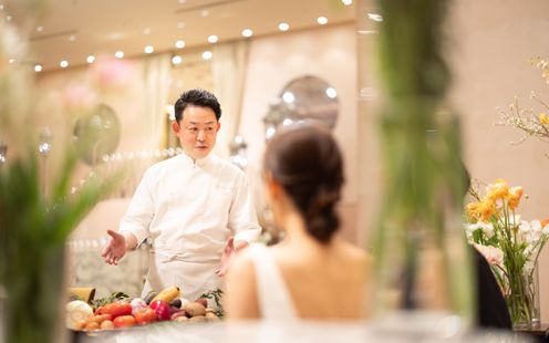 ひらまつが長年磨き上げてきた技術とシェフの感性が織りなす珠玉のイタリア料理。見た目の美しさ、香り、味わいに至るまで五感を魅了する一皿一皿を、想いを理解したサービススタッフが最高の状態でゲストへお届けします。また、フェラーリレッドの越前漆器はル・ミディひらまつオリジナル。さらに、作り手から直接仕入れた蔵出しワインのほか、ワイン用葡萄から使用したジュースなどノンアルコールも豊富。料理とサービスが一体となった上質なおもてなしで、大切な一日を華やかに彩る洗練されたレストランウエディングが叶います。