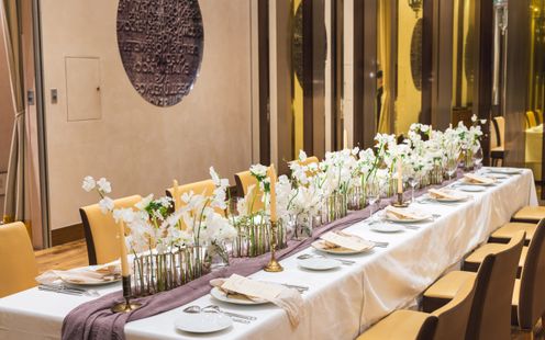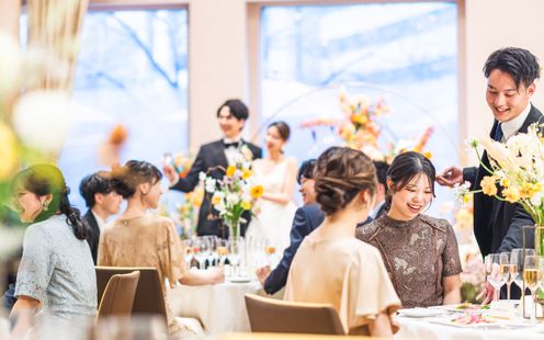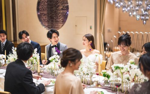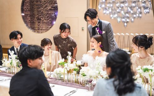 一つのテーブルをゲストみんなと囲む家族・親族中心のパーティにも最適な個室を用意!落ち着いた上質空間で、大切な方々とゆったりと心温まるひとときをお過ごしいただけます。食事を楽しみながら会話が弾む、アットホームな祝宴が叶います。