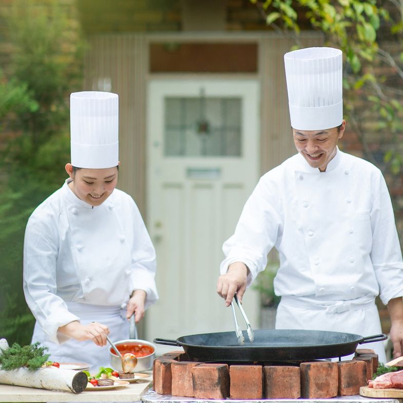 03.【ライブ感あふれる実演料理】ガーデンやテラスでシェフが目の前で仕上げる特別演出が人気
