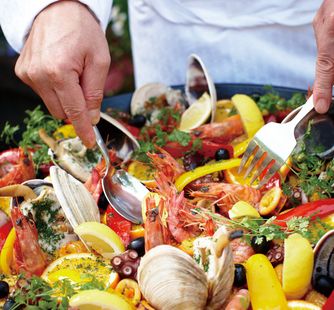 シェフが目の前で仕上げる【実演料理】は、会場に高揚感を生む人気のライブパフォーマンス!