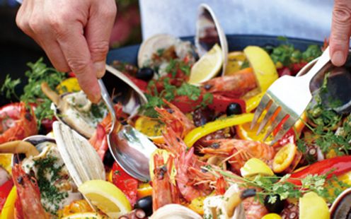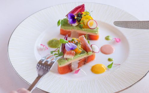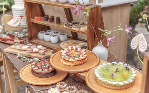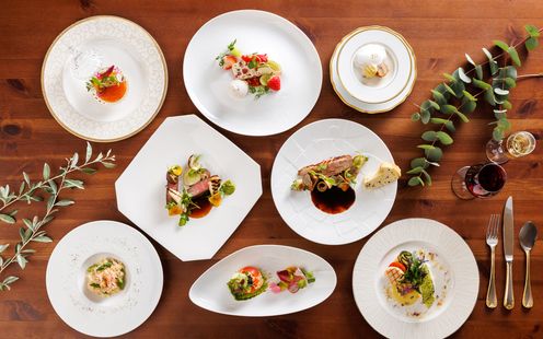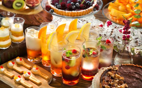 徳島県産の地元食材や旬の味覚を中心に、食材はすべてシェフ自らが厳選。素材本来の味を活かし、丁寧に仕上げた一皿一皿が、上質なおもてなしを叶えます。メニュースタイルは着席でゆっくりお召し上がりいただける、正統派のフルコース料理と、着席&ビュッフェを組み合わせたメニューからお選びいただけます。香りや音、仕上がる瞬間まで楽しめる【実演料理】は、派手な演出がなくても、ゲストにワクワク感を提供。エンターテインメント性のあるお肉料理の実演から、チーズフォンデュ、パエリア、デザートビュッフェなど幅広く対応可能。パエリアを新郎新婦で取り分けてゲストにサーブするのも素敵!美味しさと楽しさ、どちらも妥協しない料理で笑顔溢れるひとときをお過ごしいただけます。