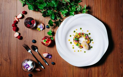 自然光がたっぷり降り注ぐ《ピュール》は、自然豊かなガーデンを望む寛ぎに満ちた空間。優雅な時間を約束するウェイティングルームも備え、ガーデンも併設。着席スタイルでコース料理を愉しんだ後は、ガーデンと自由に行き来してゲストも動きやすいひとときを。ゆるやかな時が流れるカフェのような雰囲気で、ゲストが居心地のよいおもてなしを叶えてみませんか?