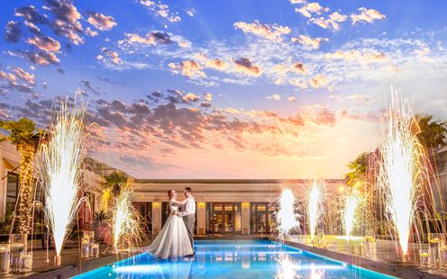 ガーデンや、プールサイドでの楽しみ方はふたり次第!デザートブッフェや、フォトシューティングなどリゾート感溢れる演出で大切なゲストと笑顔あふれるひとときを過ごしてみては。ガーデンではペットと一緒にお過ごしいただけます。