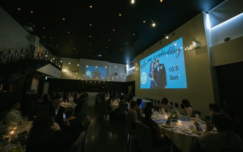 洗練された大人のカップルにおすすめのパーティルーム「シエル・デ・トワールNY」。シックでモダンな空間では最新鋭の映像演出&音響設備を備え、ライブ感あふれるパーティをお愉しみいただけます。美食を愉しみながらふたりらしいおもてなしの演出を。