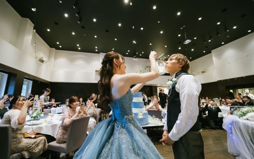 星付きシェフ監修実績を持つ本格フレンチでおもてなし。味わいはもちろん、目でも楽しめる一皿一皿が、特別な一日をより印象深く彩ります。披露宴会場にはオープンキッチンを併設し、出来立てを最高のタイミングでご提供。立ち上る香りや調理の音までもが演出のひとつに。さらにパーティー前にはアペリティフの時間をご用意し、ゲスト同士が自然に会話を楽しめるひとときを。美味しいだけではなく、「楽しかった」と心に残る祝宴をお届けします。
