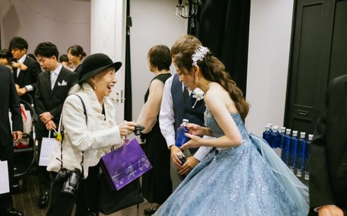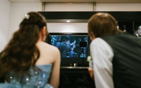 両家の大切な顔合わせの時間をゆったりとお過ごしいただける、専用の親族紹介室をご用意。落ち着いた空間で、和やかにご挨拶や紹介を行っていただけます。室内にはスクリーンも備え、思い出の映像を上映することで、両家の絆がより深まるひとときに。さらに親族専任の介添えスタッフが丁寧にサポートするため、進行やご案内も安心してお任せいただけます。
