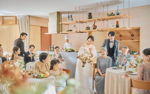 温かみのある邸宅をイメージした、アットホームな雰囲気のバンケット。”日常の延長線上にある上質なウエディング”を形にし、家族や親しい友人と笑顔あふれる祝福の時をお過ごしいただけます。自然体のスタイルをウエディングで表現したい新郎新婦の想いをかなえる空間です。