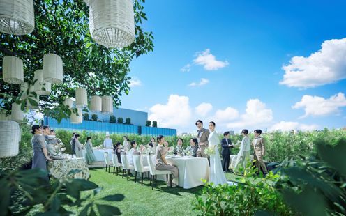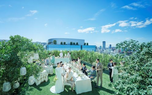 最上階に位置するガーデンテラスは、ペントハウスのような高級感漂うファミリーウェデイング向けのバンケットに併設!また、チャペル前には温かみあふれる屋外ガーデンもあるので大聖堂での挙式後にアフターセレモニーやゲスト全員での記念撮影なども可能です。