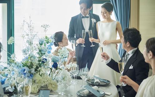 東京の景観を一望できるテラス付き!開放感溢れる家族とのファミリー婚専用バンケット