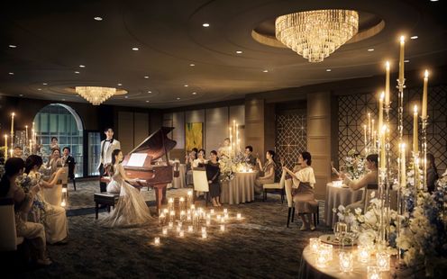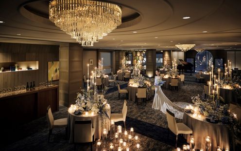 ラグジュアリーホテルのスイートルームを思わせる、煌びやかな大人のバンケット。光り輝くシャンデリアや素材の上質さを感じるファニチャーに彩られた空間は、まるで大人の隠れ家のよう。重厚感漂うムードに包まれながら、大人のロマンティックな時間が流れます。