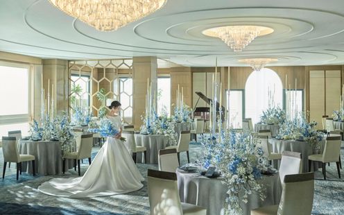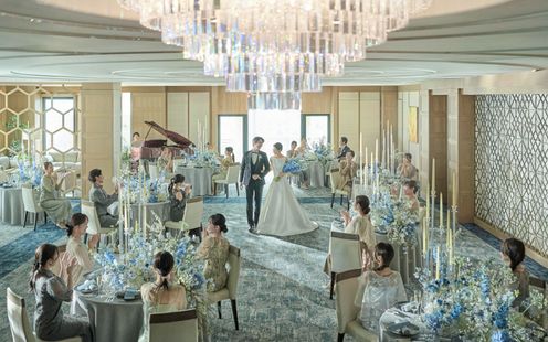 東洋と西洋のマリアージュが魅力的な洗練された趣のバンケット。国際色豊かな文化が交わる表参道らしく、多様な方々をお迎えする場にふさわしい空間です。シャンデリアが輝く明るい空間に、オリエンタルな配色や東洋を思わせるモチーフと小物が溶け合い、ムードたっぷりの世界観が広がります。