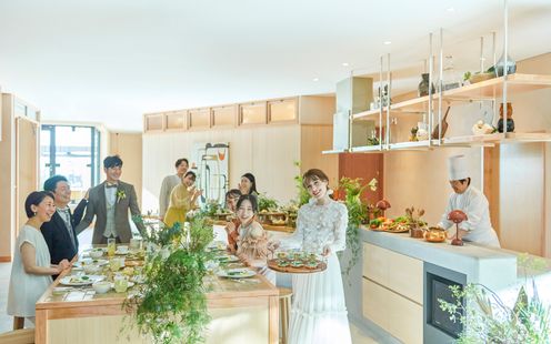 1Fのオールデイダイニングはふたりが打合せのたびに利用いただけます。 「記念日の館」として準備~結婚式、そしてウェディングが終わってからもふたりにとって思い出の場所としてあり続けられるように。結婚記念日にはふたりでディナーを、またある時はふたりがホスト役となって友人の誕生日をお祝いしたり、など『いつでも帰っていただける場所』として私たちは在り続けます。