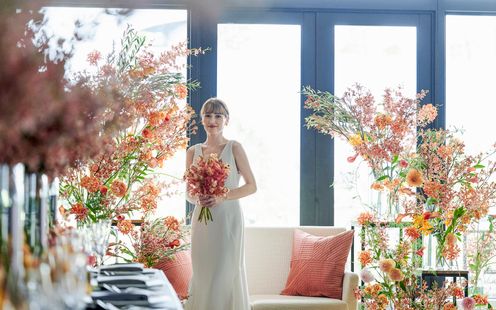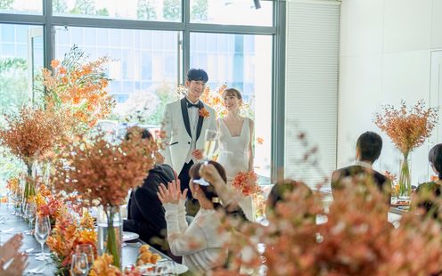 シーズン毎に展開される最新のトレンドコーディネートは、従来の結婚式とは違い食器やカトラリー、グラス、クロスの素材まで自由にセレクトできるのが魅力です。お気に入りのコーディネートを自由にアレンジ可能です。また、ふたりの憧れのスタイルにあわせて専属フローリストが洗練された空間をお作りいたします。