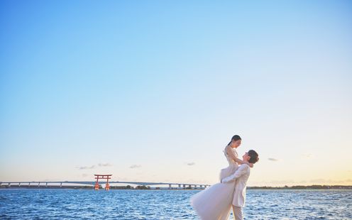 【人気急上昇!】衣装・ヘアメイク持込フリー、打合せも1回でOK!両親&友人も参加無料、ととにかくお得な「写真だけの結婚式プラン」もあるので要チェック!敷地内の海辺を完全貸切で記憶に残るロケーション撮影をお愉しみいただけます。