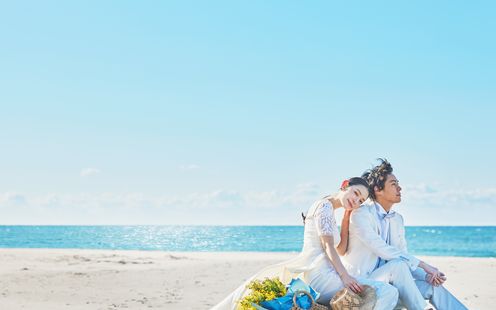まるでリゾートウェディング!目の前が海だから移動無しで最高のロケーション撮影をお愉しみいただけます。