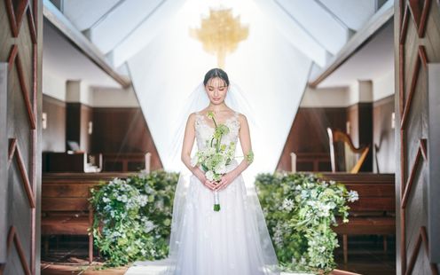 大きな窓から降り注ぐ光はドレスをより一層美しく輝かせ、四季折々の景色もお楽しみいただけます。