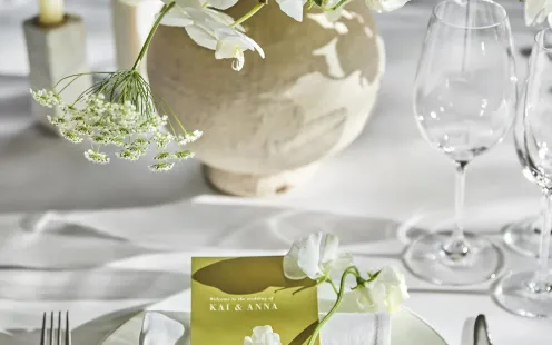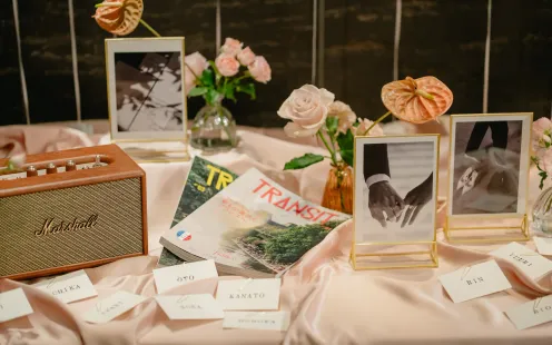ふたりの憧れのイメージを丁寧にヒアリングし、ウエルカムスペースからテーブルスタイリングまで専属フローリストがふたりらしいおもてなしの空間を創り上げます。