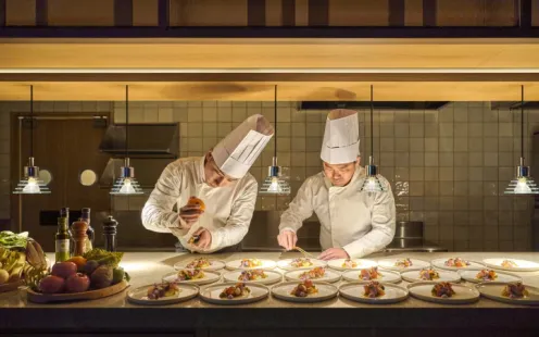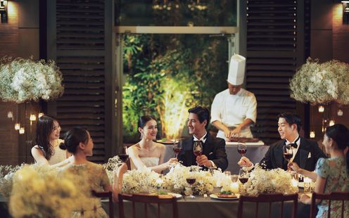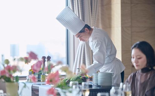 開業以来、65年歴史の中で国内外の美食家たちを愉しませてきたホテルの味。幅広いジャンルの料理を提供でき、進化し続けるホテル伝統の味と熊本の食材を融合させた絶品料理で、ふたりの大切なゲストをおもてなしします。会場に併設されたキッチンから温かい料理は温かいうちに、冷たい料理は冷たいうちに出来立てをそのままお届けします。