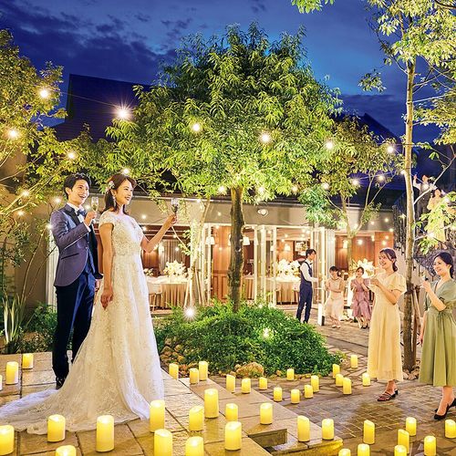 02.<緑豊かなガーデン>デイタイムは青空が美しく、夜はキャンドルでロマンチックに