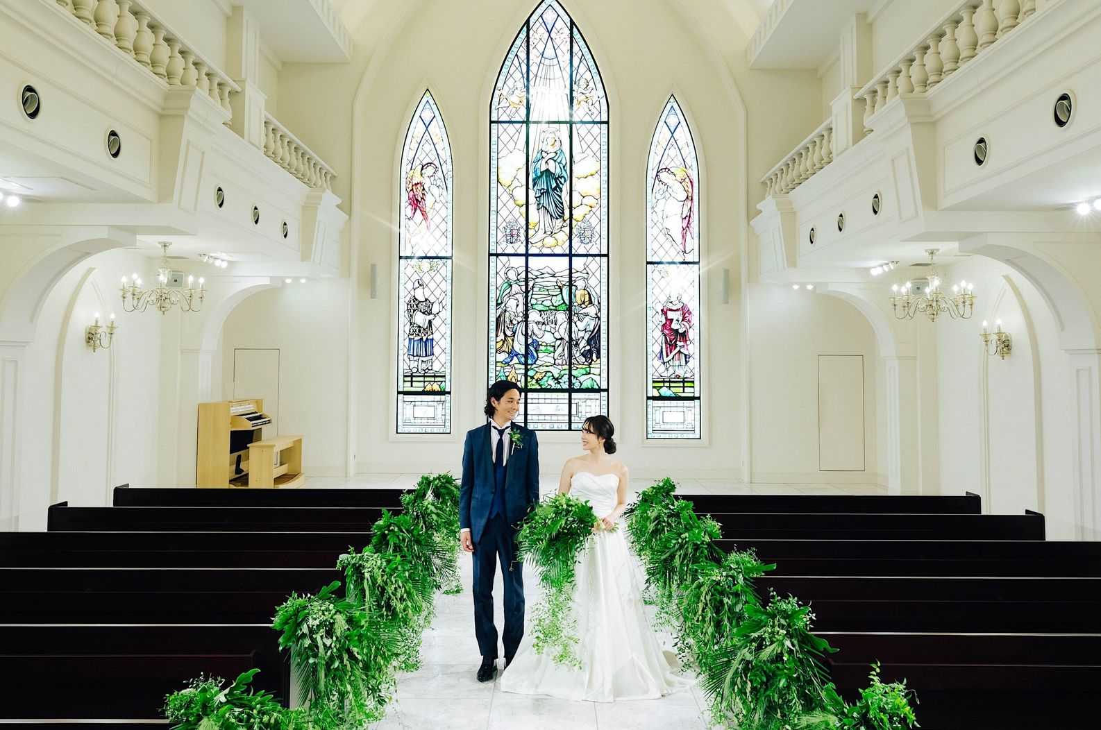 02.<選べるバージンロード>大迫力のステンドグラスが美しい大聖堂で叶える感動セレモニー