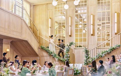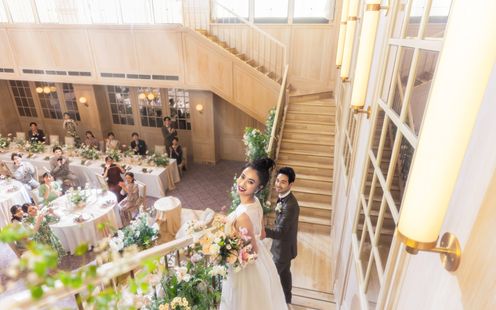 憧れのY字階段からの入場!和と洋のバランスを兼ね備えた大人花嫁に人気のエレガントな空間