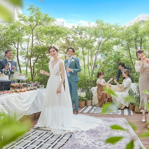 03.【天神駅1分】都心とは思えない開放感!緑豊かなテラスでビュッフェやグランピング演出も