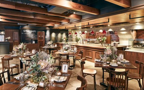 銀座1丁目駅からすぐの好立地。ダイワロイネットホテル銀座2Fに位置するイタリアレストランを貸切でアットホームな一日を。