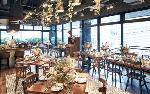 自然光を活かして大人ナチュラルな雰囲気にも、モダン、クラシカル、和風などふたりの希望通りにアレンジいたします。ふたりに寄り添い、レストランウエディングが素敵と思えるスタイルを提案させていただきます。ハレの日にふさわしく、おふたりらしい色彩でコーディネートしてください。