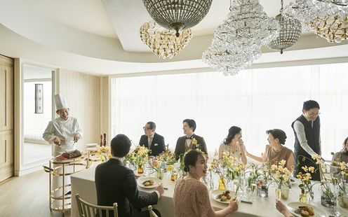 何名からでも貸切にできるので、親族だけでの会食、友人も交えた披露宴など、多彩なパーティスタイルが叶います。