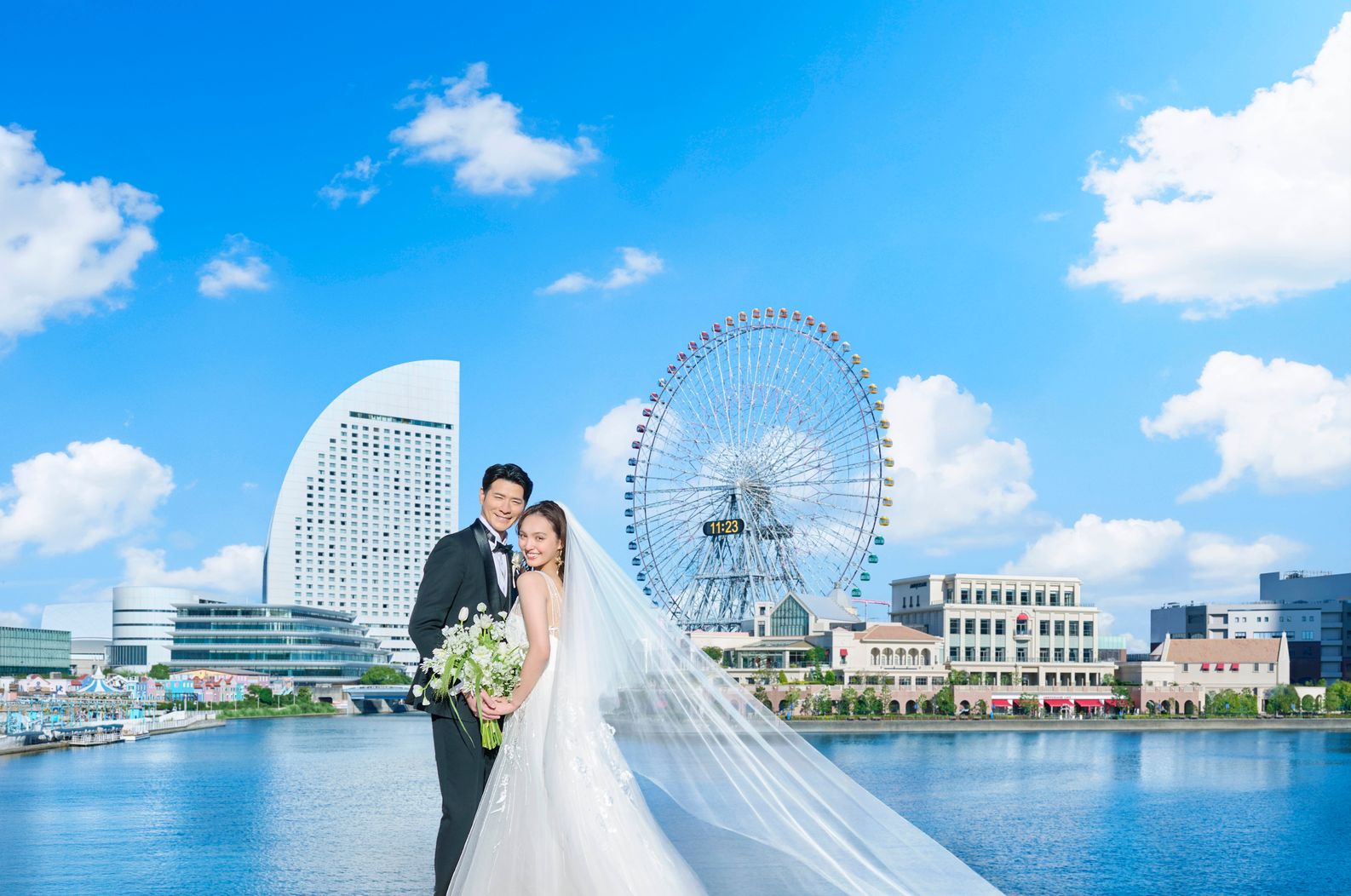 01.【観覧車の真下、みなとみらいの中心地】青空と広い海に囲まれたみなとみらいウェディング