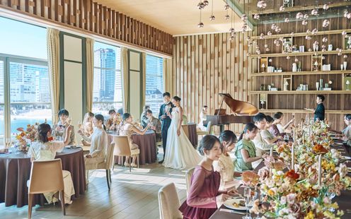 みなとみらいの景色を堪能できる海辺のレストランをイメージ。開放的なテラス付のパーティ空間