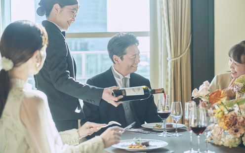 来館から親族様紹介までの時間をおくつろぎください。挙式前に両家の顔あわせで利用いただけます。
