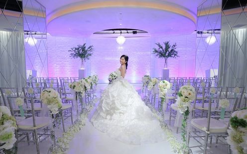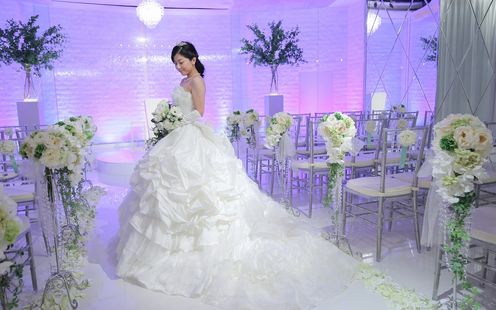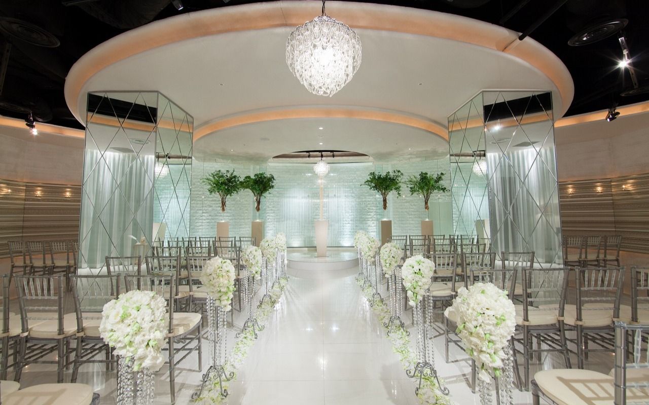 煌びやかなシャンデリアが配された空間には、中央で愛を誓い合う新郎新婦を囲むようにゲスト席が配され、結婚式に招かれた一人ひとりとの繋がりも感じながら挙式を執り行えます。