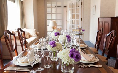 茨城県の『ホテル テラス ザ スクエア 日立』では、3つの披露宴会場が用意されています。『テラスボールルーム』は、最大180名まで着席できる広々としたスペースが特徴的。巨大な楕円形の空間に気品あふれる調度品が配され、ホテルウェディングにふさわしい華やかな披露宴が叶います。『ザ スクエアルーム』は、落ち着きのある色調の空間にイタリアから取り寄せた調度品が配されたスタイリッシュな会場。ゲスト同士の距離感が近いことから、自然と会話の弾む和やかな結婚式となるでしょう。アートのトレンド発信地として知られるニューヨークの五番街をイメージした『チェルシー』は、感度の高い花嫁から人気の会場です。