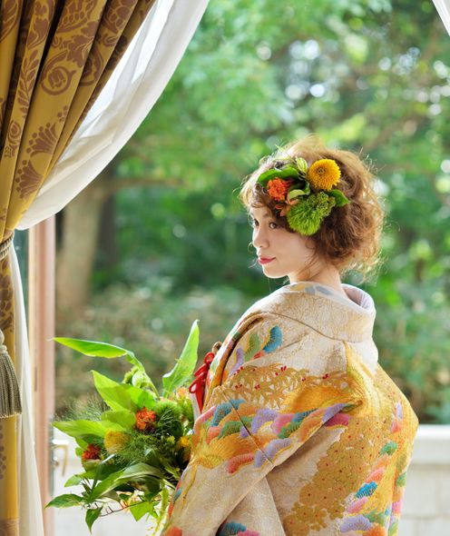 豊富な品揃えが魅力の和装は白無垢や色打掛、引き振袖など。